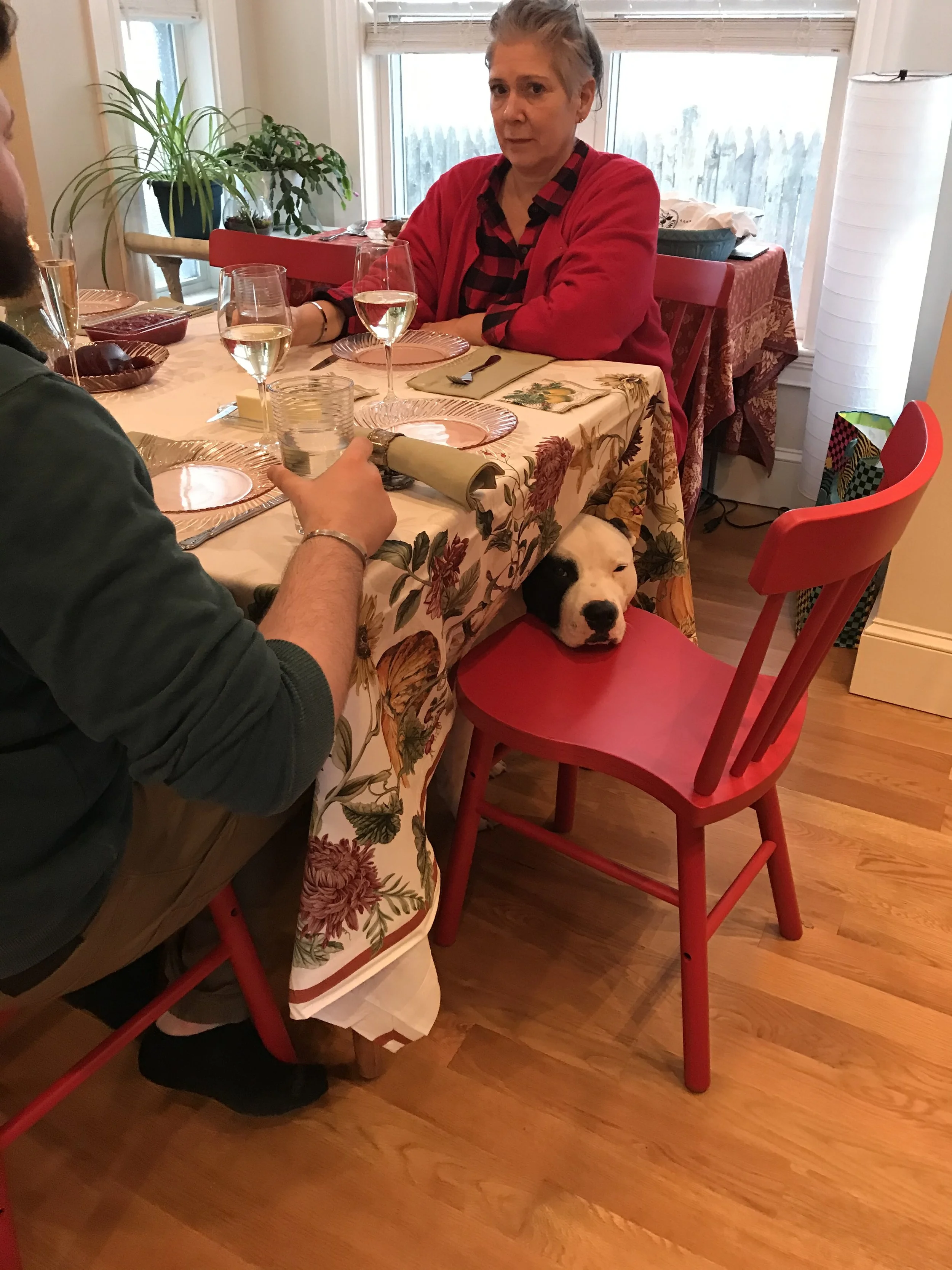 I think my sister was wondering … “Is he going to be under the table for the entire meal?”