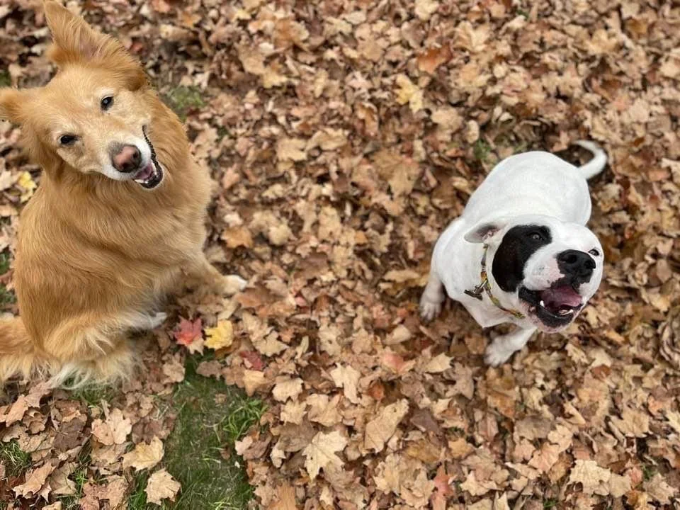 Daisy, 12 (left) and Petey, 9, have some rusty behaviors as we once again venture deep into our woods